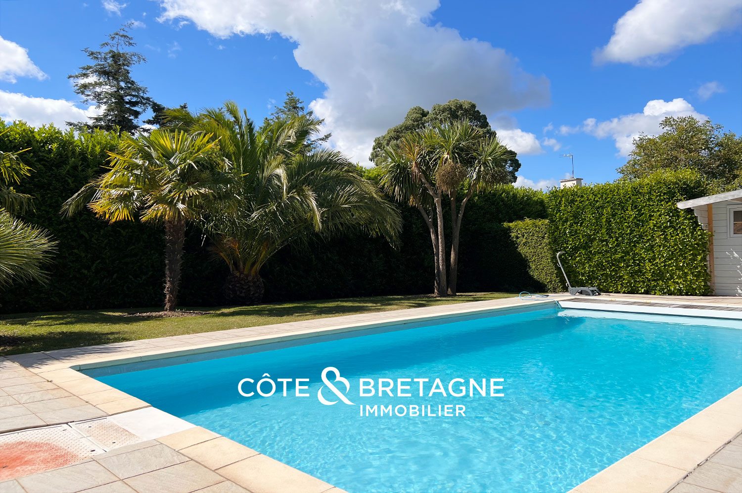 CÔTE & BRETAGNE IMMOBILIER VOUS PROPOSE BORD DE MER & CONVIVIALITE. Binic, département des Côtes d’Armor, devenez propriétaire de cette maison avec piscine implantée sur un joli terrain orienté sud de 1414 m2 et développant 136 m2 habitables. Équipée d’une piscine, d’une terrasse d’environ 140 m2, elle saura combler vos attentes. Vous serez sous le charme de ces espaces ouverts et baignés de lumière grâce à de larges baies vitrées, exposés au Sud avec une vision sur les extérieurs s’appropriant la plus belle exposition, pensés et conçus par les propriétaires. Elle invite à la convivialité. Sa distribution intérieure est fluide et fonctionnelle. Une entrée donne l’accès à une pièce à usage de bureau d’un côté et aux pièces de vie généreuses et lumineuses tournées vers les différentes terrasses de l’autre. On y retrouve le salon et la salle à manger avec accès direct sur l’espace piscine. De l’autre côté, c’est l’espace dînatoire avec sa cuisine aménagée et équipée, permettant ainsi de prendre le petit-déjeuner. Un atout majeur : sa chambre au niveau des pièces de vie avec accès sur l’extérieur. Une salle d’eau, un wc indépendant, une buanderie, une pièce et un garae complètent le rez-de-chaussée. Côté nuit : un escalier mène à l’étage. Un palier dessert une chambre, trois pièces à usage de chambre, une salle de bains et wc indépendant. Outre la maison principale, la propriété dispose d’un chalet aménagé et équipé comprenant une pièce de vie, deux pièces à usage de chambres et bloc sanitaire. Une belle opportunité pour de la location ou pour recevoir des amis. Situation : centre-ville, port, écoles, collèges, lycée, commerces, golf, centre nautique… CLASSE ÉNERGIE : E / CLASSE CLIMAT : B. Montant moyen estimé des dépenses annuelles d’énergie pour un usage standard, établi à partir des prix de l’énergie de l’année 2021 : entre 2040 et 2820EUR. Les informations sur les risques auxquels ce bien est exposé sont disponibles sur le site Géorisques : www.georisques.gouv.fr Prix : 633 180EUR Honoraires inclus | 610 000 EUR hors honoraires. Honoraires : 3.80 % TTC à la charge de l’acquéreur. Votre Agence immobilière de prestige Saint-Brieuc-Plérin-Bord de mer. Côte et Bretagne Immobilier. Consulter nos tarifs. Côte et Bretagne Immobilier, votre agence immobilière de prestige en Bretagne. Vous souhaitez estimer, vendre ou acheter une maison en bord de mer, contactez-nous. Une équipe professionnelle à votre service.