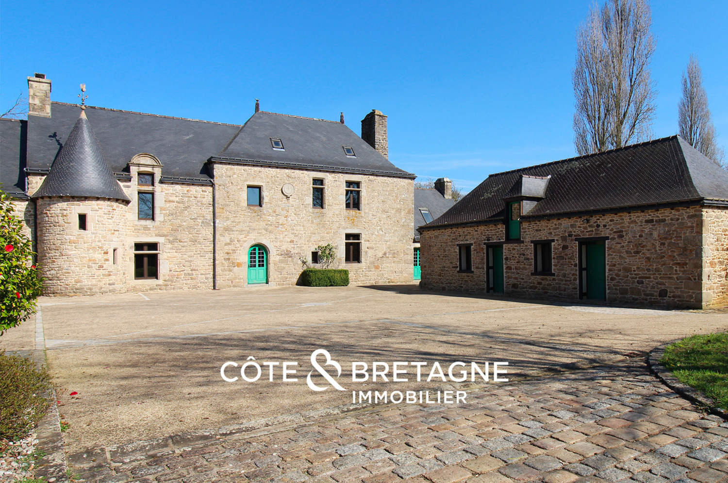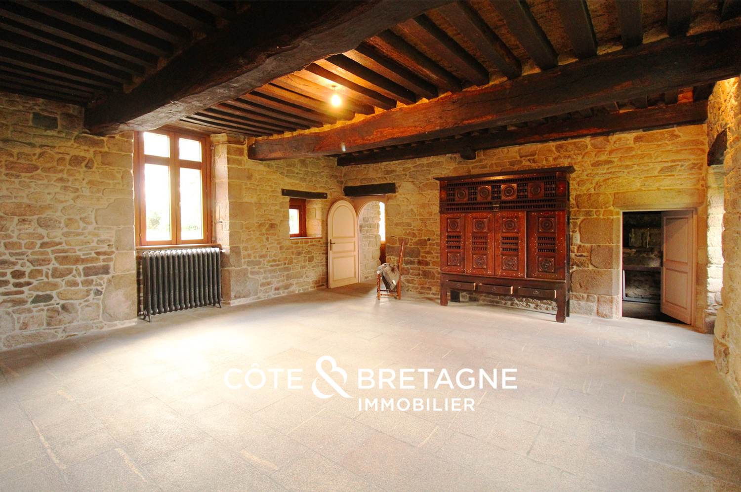 Situé à Bourbriac, au coeur d’une paisible campagne bretonne, ce joli petit manoir rénové, de plus de 260 m2 habitables, daté du 18ème siècle, séduira les amoureux d’authenticité par ses superbes poutres anciennes, de solides escaliers en pierre et de belles cheminées d’époque.