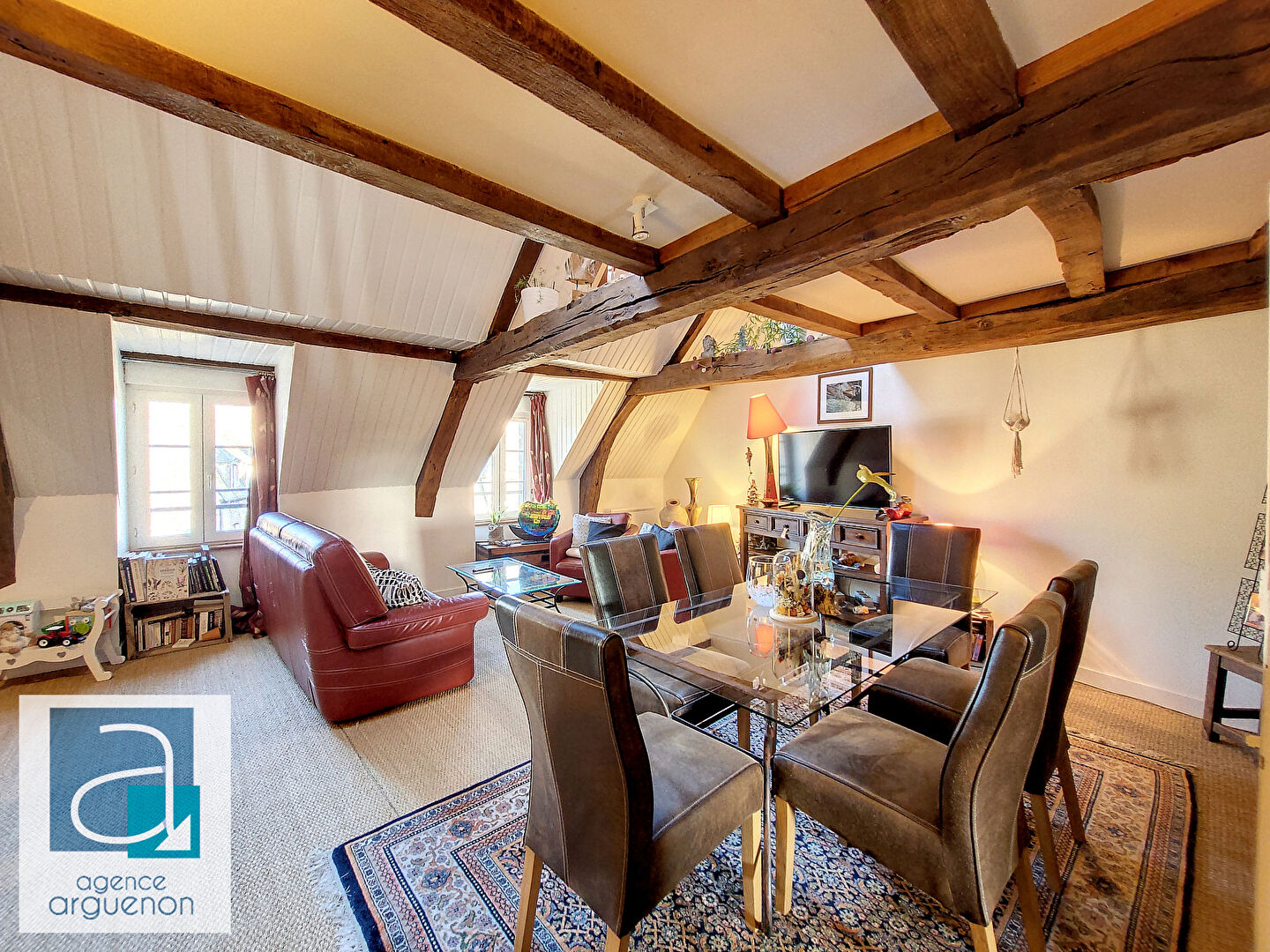 Bien situé dans le coeur historique de DINAN, joyau architectural bordant la Vallée de la Rance , ville moyenne ou il fait bon vivre. Ce charmant duplex situé au dernier étage d’une belle et fière bâtisse bourgeoise, dans une petite copropriété bien tenue. L’escalier est impressionnant, un bel ouvrage bien conçu pour nous amener facilement au 3ème étage. L’entrée de l’appartement est bien équipée avec de grands placards, penderie et rangements pour chaussures, accès aux wc avec lave mains, à droite, la cuisine : exposée à l’ouest et aux vues dégagées, équipée et aménagée, grands placards , de la place pour une grande table conviviale, on entre ensuite dans la pièce à vivre aux volumes généreux et baignée de lumière avec 2 fenêtres de toit, et 3 fenêtres qui offrent des vues sur les toits de Dinan, Au dessus, les deux chambres coquettes et la jolie salle de bains , des vues dégagées. C’est un appartement absolument charmant, atypique, invitation au cocooning, des belles pièces mises en valeur , ce qui apporte une touche de caractère bien sympathique ! Une cave est inclue, elle est grande et bien pratique! Et? cerise sur le gâteau : à l’arrière de l’immeuble une cour avec préau est à la disposition des copropriétaires pour profiter des vues dégagées, du soleil couchant, quelle chance !