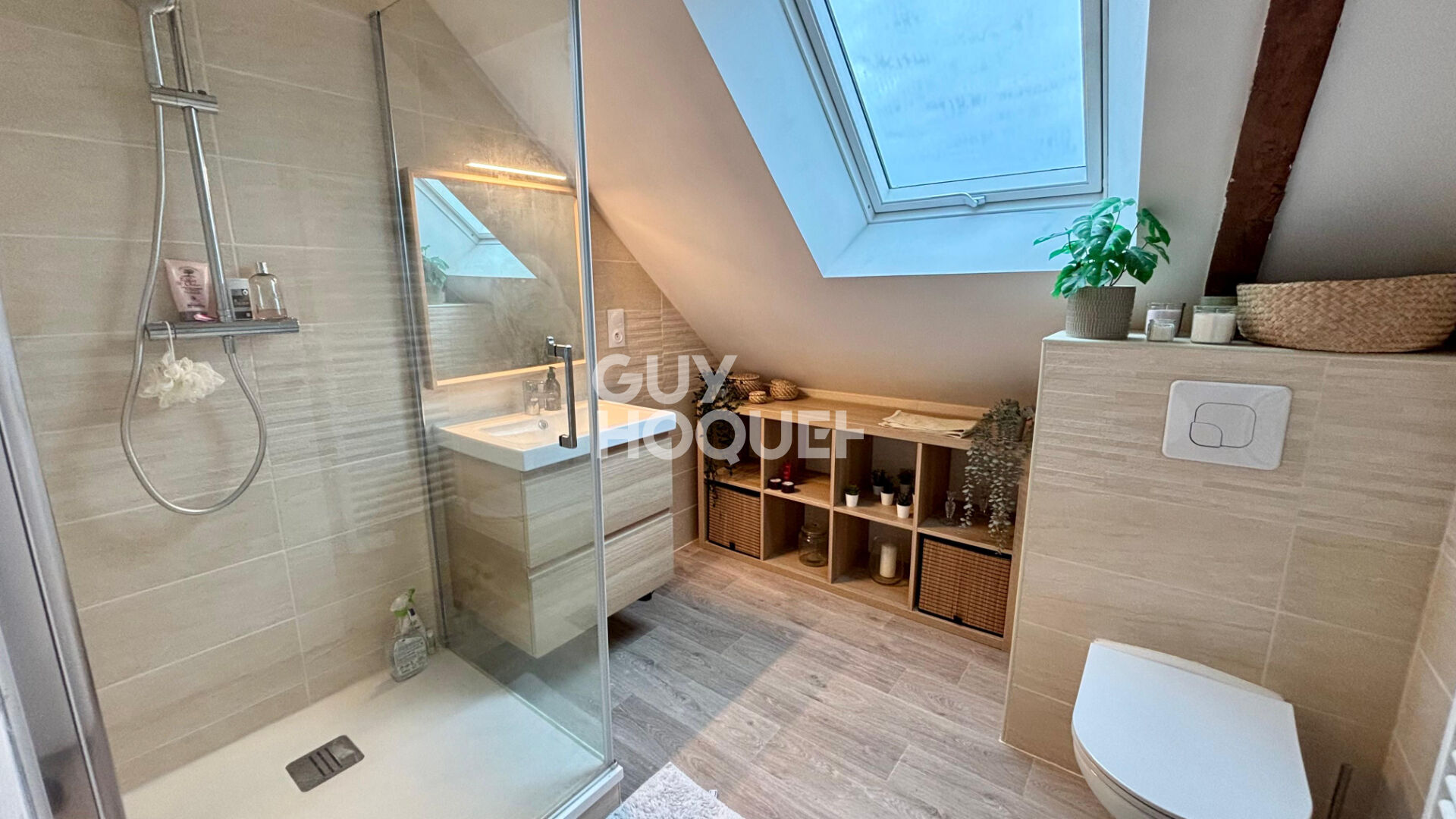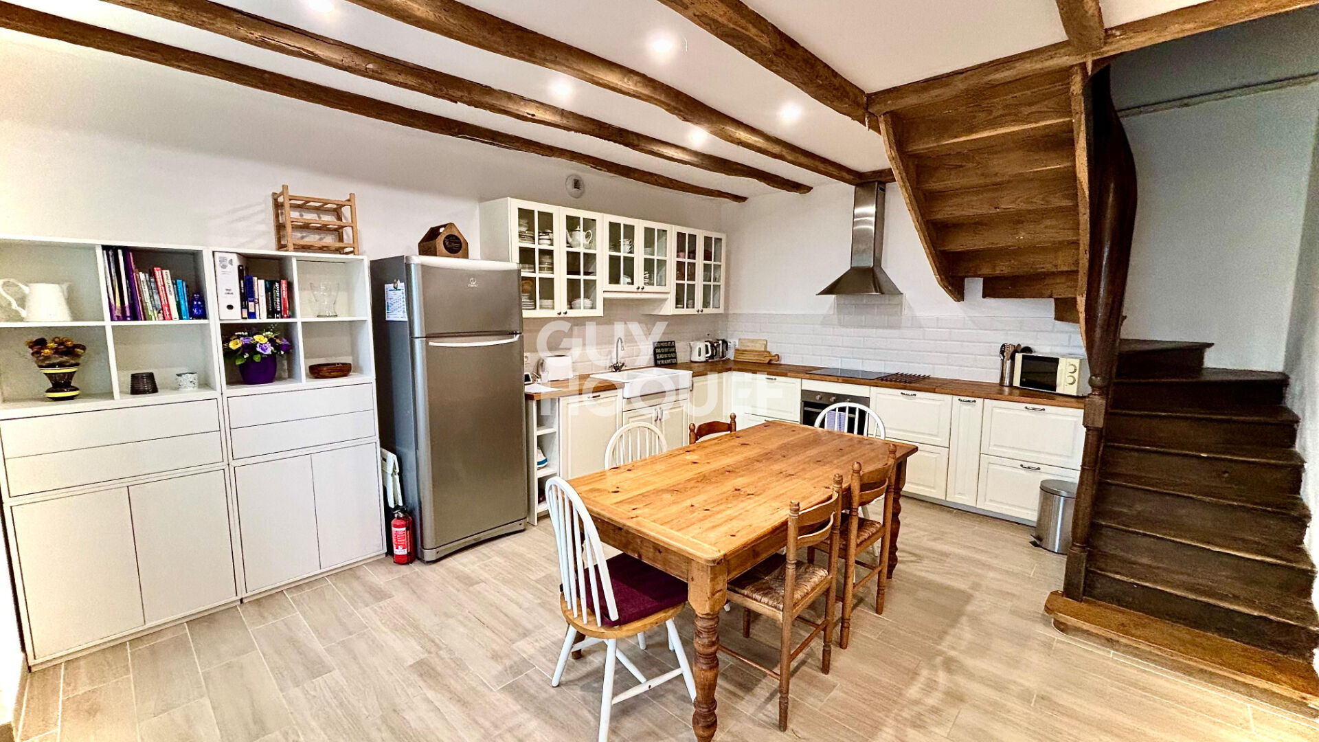 Elle se compose au rez-de-chaussée d’une entrée lumineuse ouvrant sur une belle cuisine aménagée et équipée, ainsi qu’un grand salon-séjour chaleureux(…)