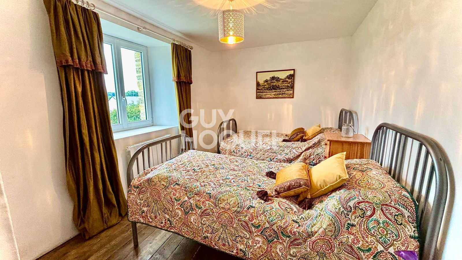 Au premier étage, un palier dessert trois chambres sur plancher bois, une salle d’eau et un WC indépendant.