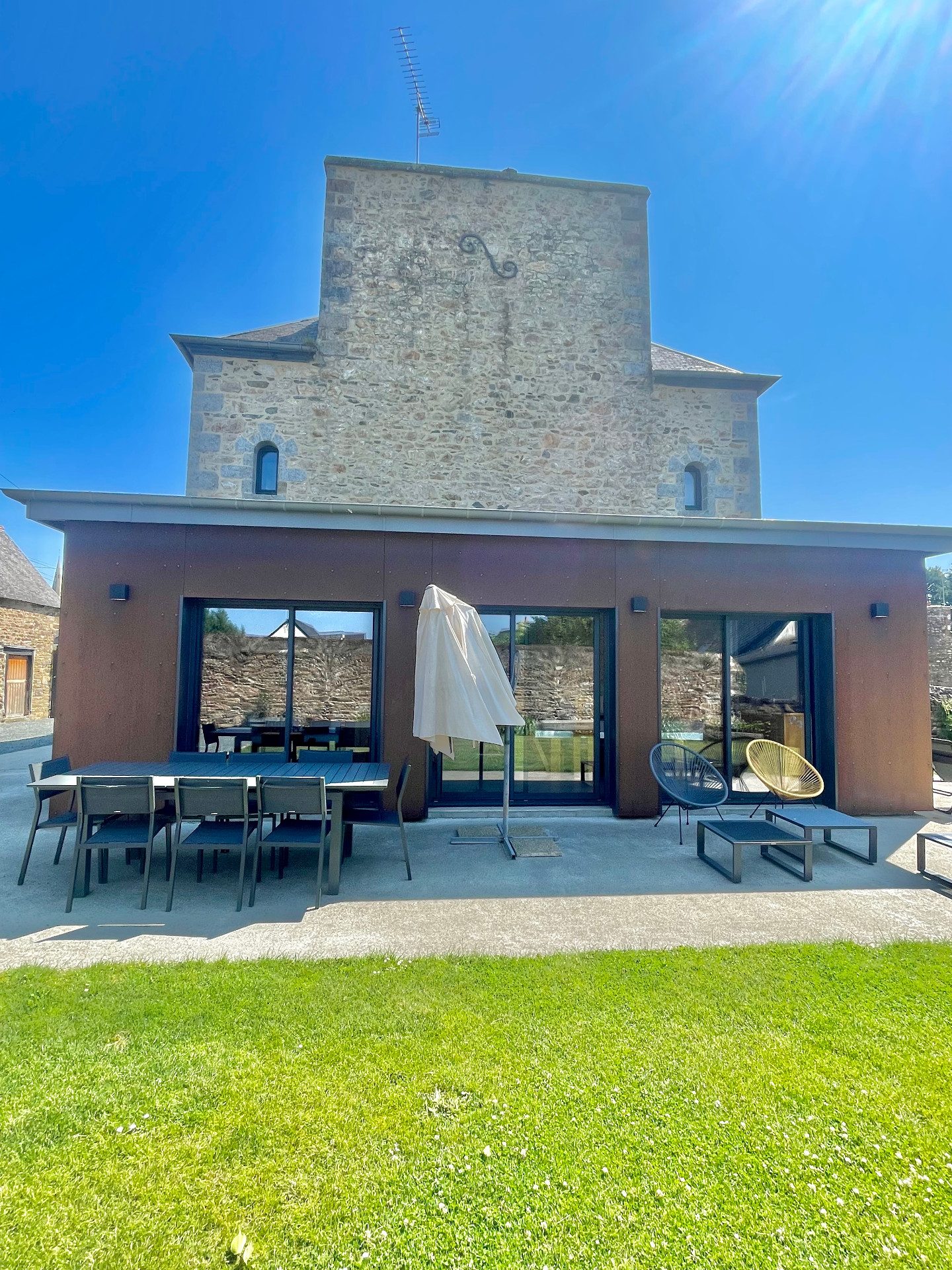 LANVOLLON A 10 MN DES PLAGES, Très belle Maison de Maître rénovée de 225 m² avec extension sur un terrain clos de murs en pierres d’environ 884 m², comprenant : – Au rez-de-chaussée : Belle pièce de vie avec cheminée et cuisine équipée à l’américaine, salon-salle à manger dans extension ouvrant sur terrasse et jardin exposés sud-ouest, une chambre avec salle d’eau privative, espace buanderie et WC ; – Au premier étage : palier desservant quatre chambres avec placards dont suite parentale avec salle d’eau, et WC ; – Au deuxième étage : palier desservant trois chambres dont une avec mezzanine, bureau et salle de bains avec WC. Dépendance aménageable composée d’un garage, d’un cellier, d’une terrasse couverte avec grenier / salle de jeux au-dessus. Plusieurs Stationnements possibles. Chauffage par pompe à chaleur. PROCHE TOUTES COMMODITÉS… TRÈS BEAUX VOLUMES… RÉNOVATION DE QUALITÉ… Réf 4197. CLASSE ÉNERGIE A. CLASSE CLIMAT A. Estimation des coûts annuels d’énergie du logement : entre 970 et 1 380 par an d’après les prix moyens des énergies indexés sur les années 2021, 2022 et 2023 (abonnement compris). Honoraires d’agence 3 % TTC à la charge de l’acquéreur.Prix hors honoraires 487 800 .