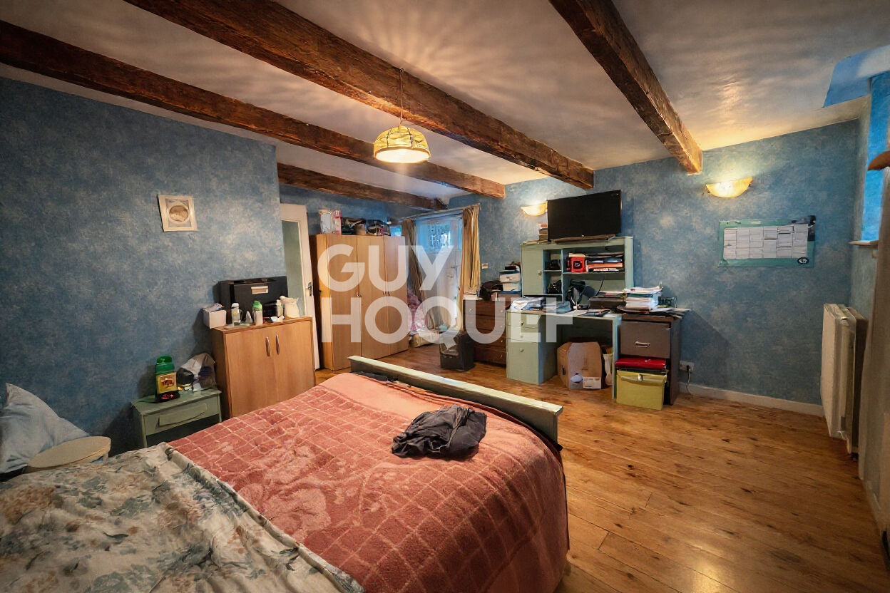 La maison se compose au rez-de-chaussée, d’un salon séjour de 32 m² exposé sud-ouest, d’une cuisine aménagée, d’une chambre, d’une salle d’eau avec WC et d’une buanderie. À l’étage, deux grandes chambres ainsi qu’un palier spacieux permettent de repenser les volumes selon vos besoins (chambres supplémentaires, bureau, salle d’eau). Un grenier de 54 m², actuellement non isolé, offre un important potentiel d’aménagement pour augmenter la surface habitable.