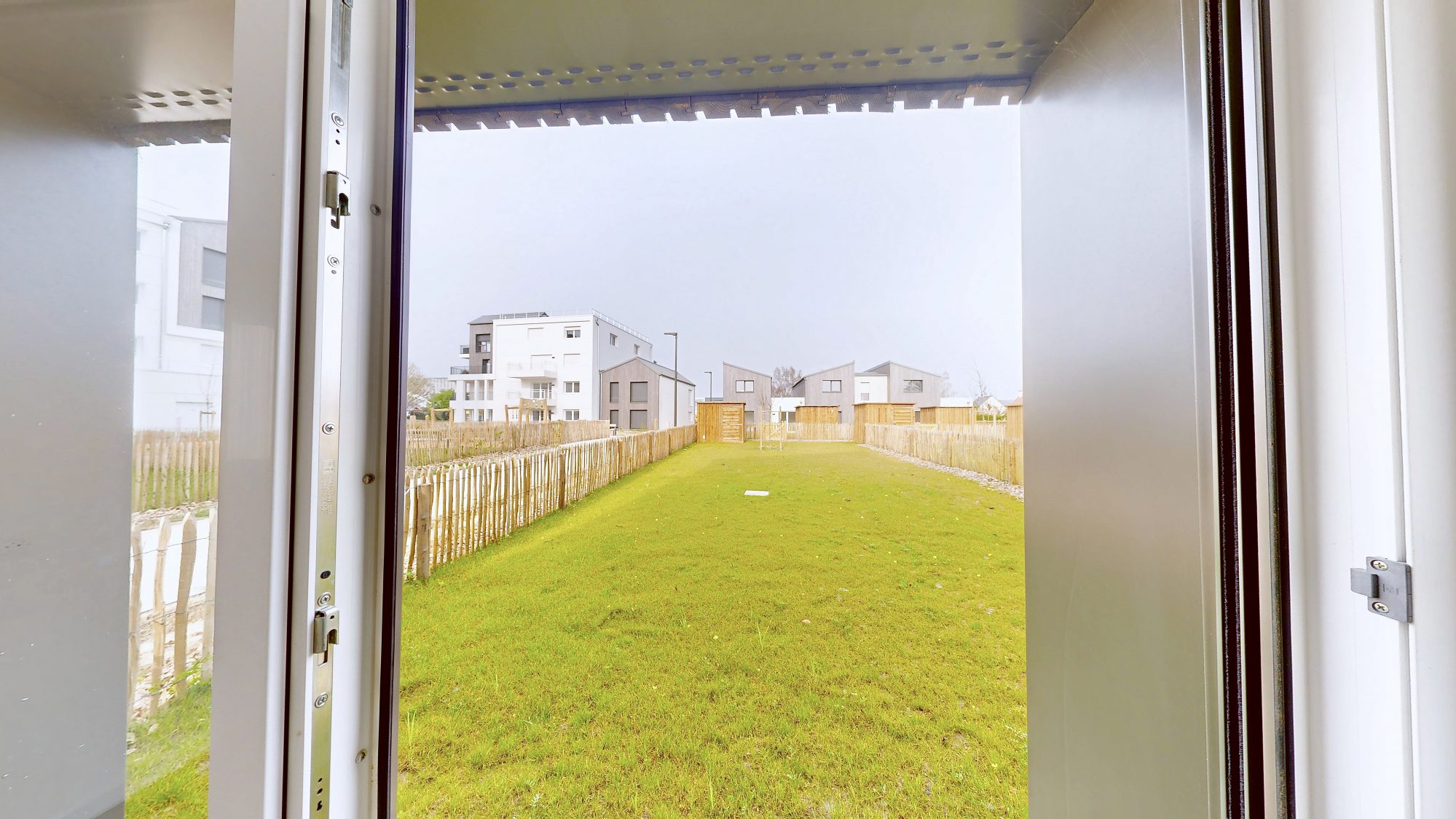 Résidence neuve en cours de livraison. Frais de notaire réduits. Ecole, bus, commodités à pied. Gare de CAEN 9 min en voiture. Programme paysager avec appartements et maisons, potager, aire de jeux.