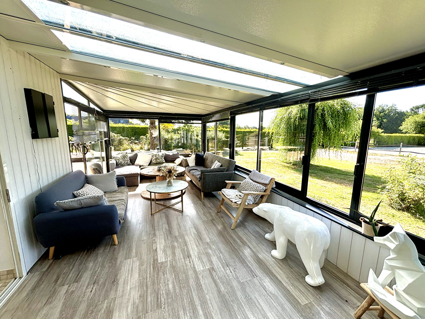 Cette propriété allie confort moderne et cadre naturel exceptionnel. La maison se compose au rez-de-chaussée d’une entrée avec placard, d’un salon/séjour lumineux avec cheminée et cave à vin, ouvert sur une véranda équipée(…)