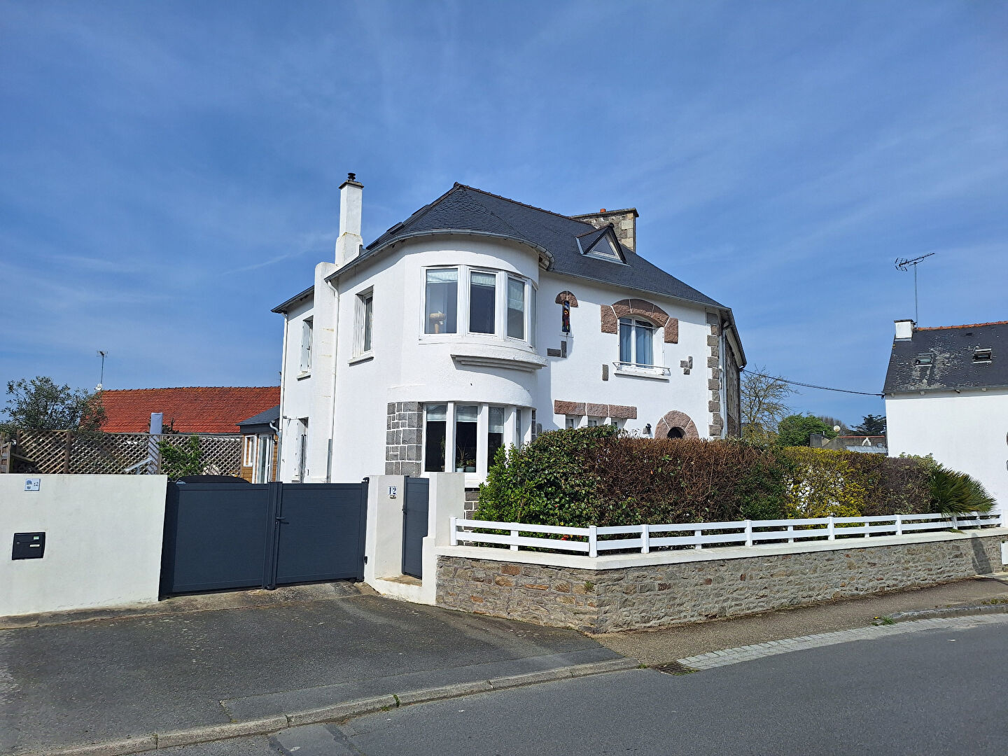A l’extérieur: Jardin entièrement clos de murs avec portail motorisé. Enrobé pour stationnements Terrasses bois Abris de jardin