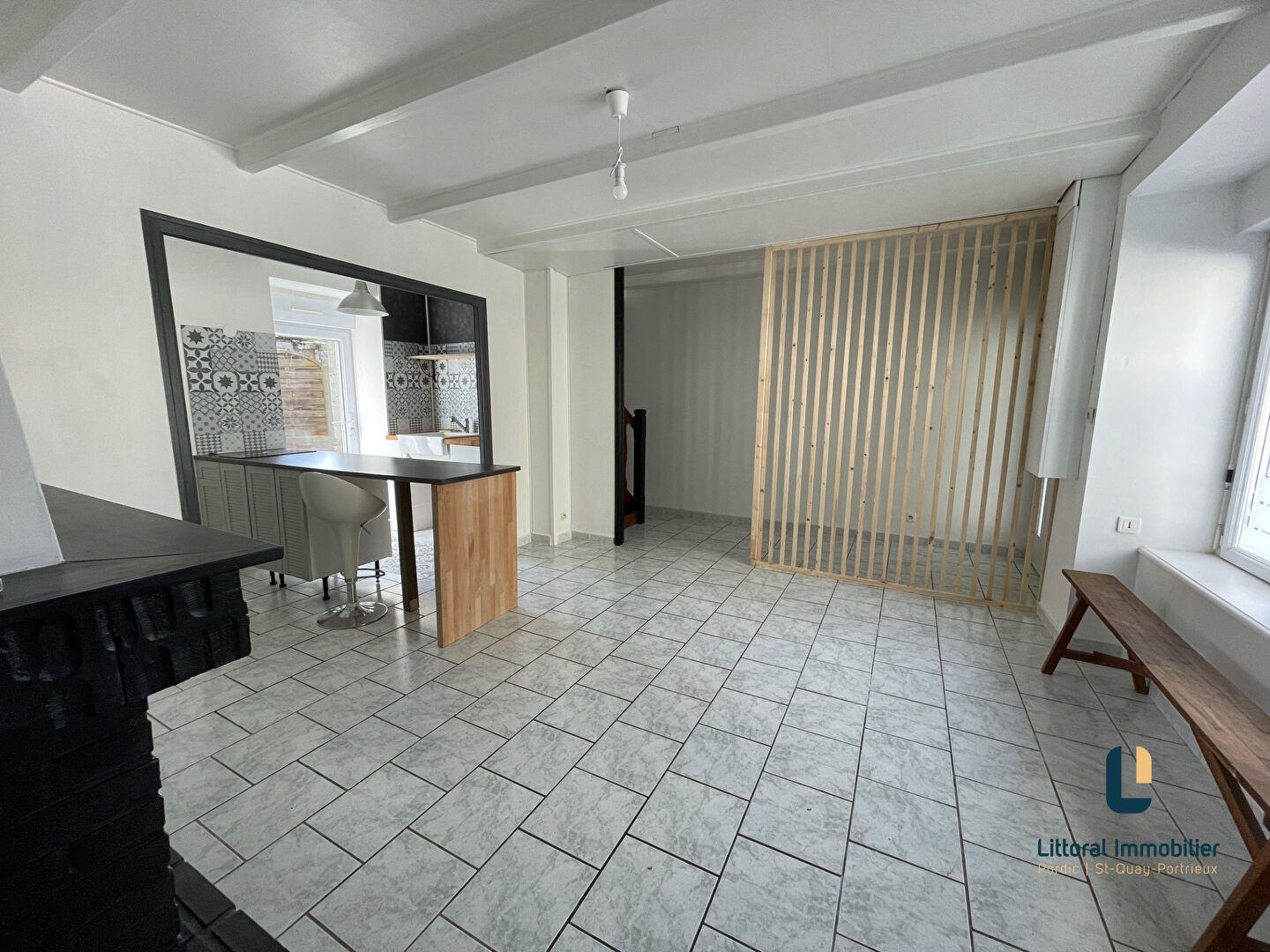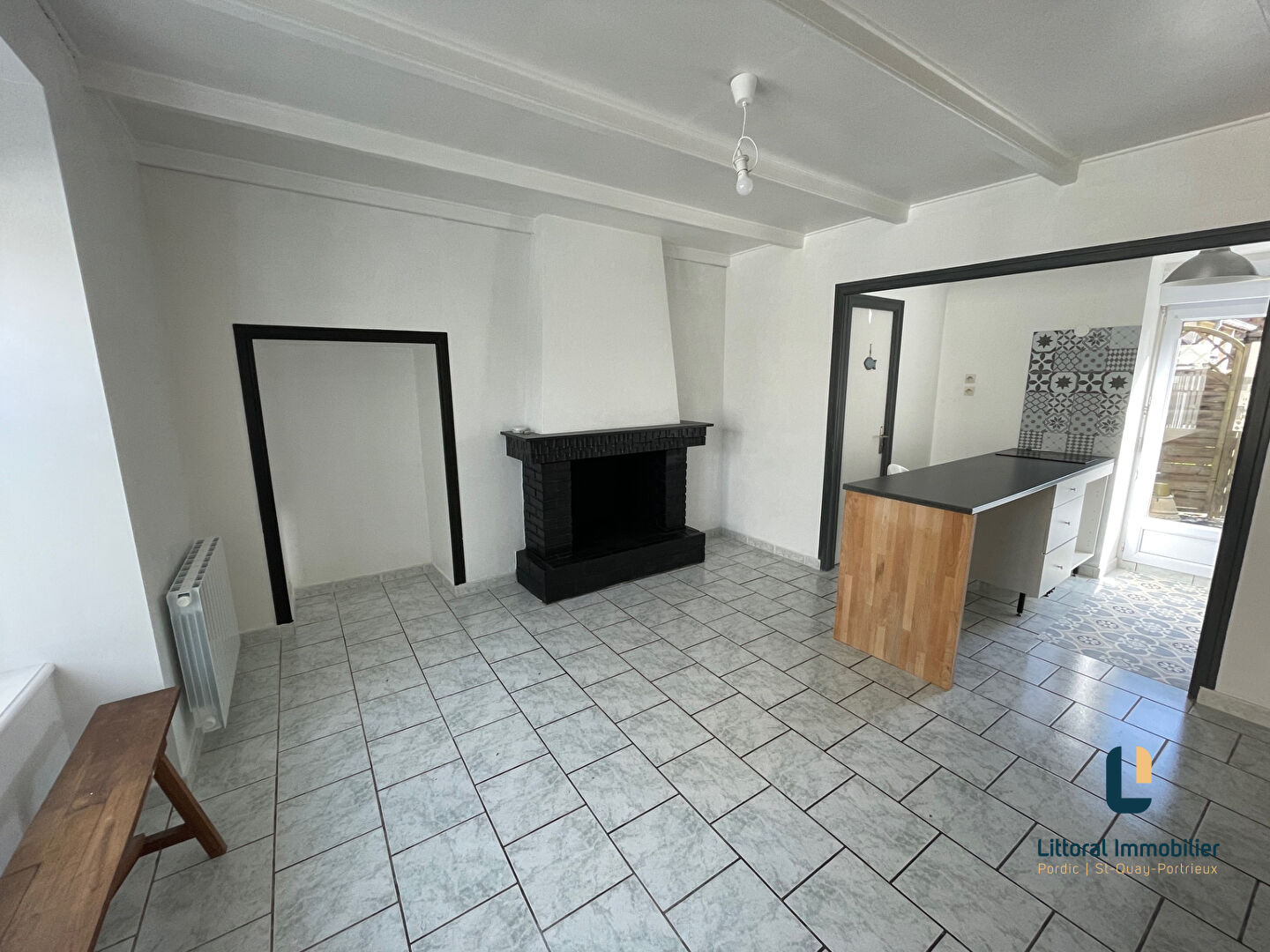 PORDIC CENTRE! SEULEMENT CHEZ LITTORAL IMMOBILIER PORDIC , SAINT QUAY PORTRIEUX! Très belle maison de ville en pierre comprenant un salon séjour cuisine avec double exposition donnant sur une petite terrasse au sud et un wc en rez de chaussée. A l’étage, un palier desservant deux chambres et une salle d’eau avec wc. Au deuxième, une grande chambre mansardée avec coin dressing. UNE OPPORTUNITE RARE SUR LE MARCHE!