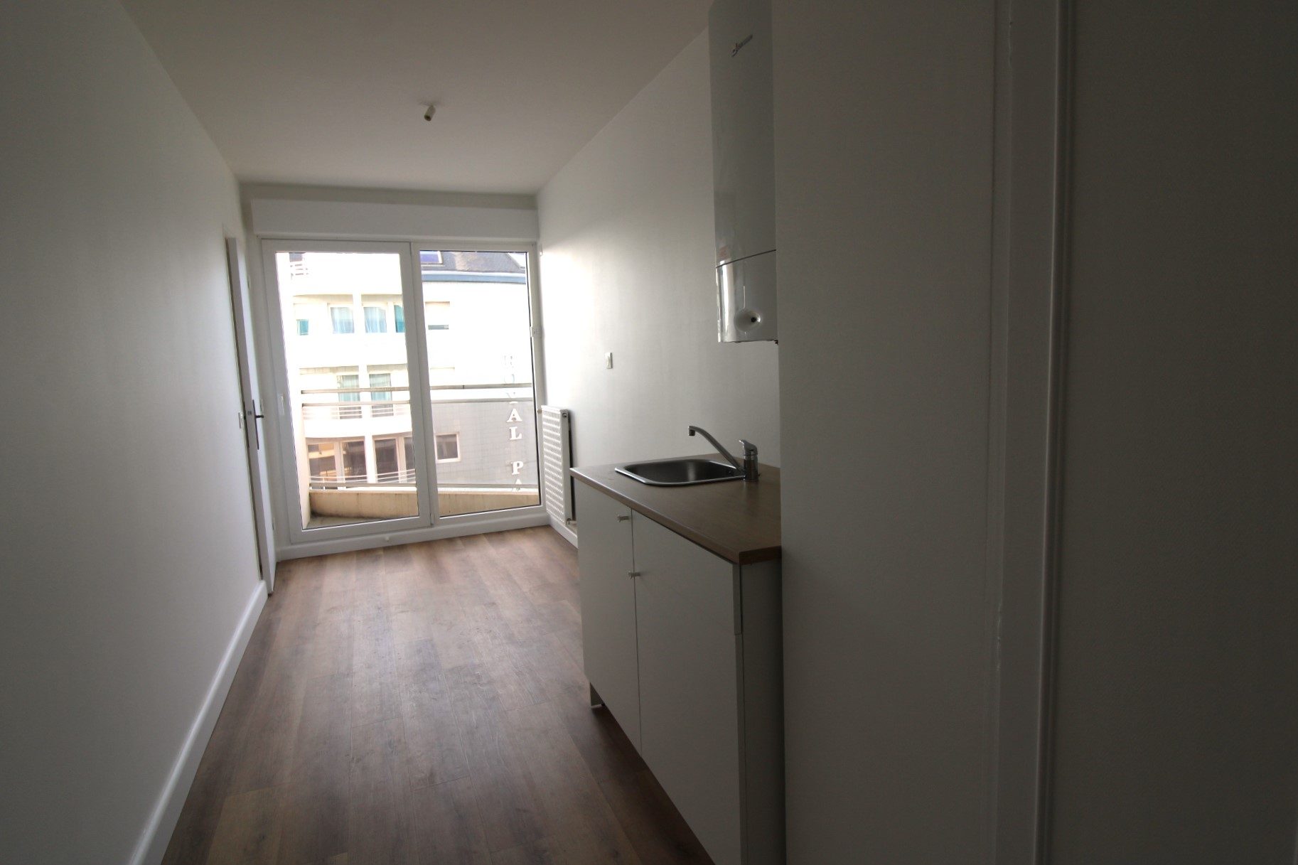 EXCLUSIVITE GOULARD IMMOBILIER, St-Brieuc centre, rue Monseigneur Morelle, au 5ème étage avec ascenseur, BEL APPARTEMENT T2 de 55 m² comprenant : entrée, débarras, salle de bains, séjour, cuisine avec placards, une chambre avec placard, balcon. Chauffage individuel au gaz. Cave. Disponible Novembre 2025.