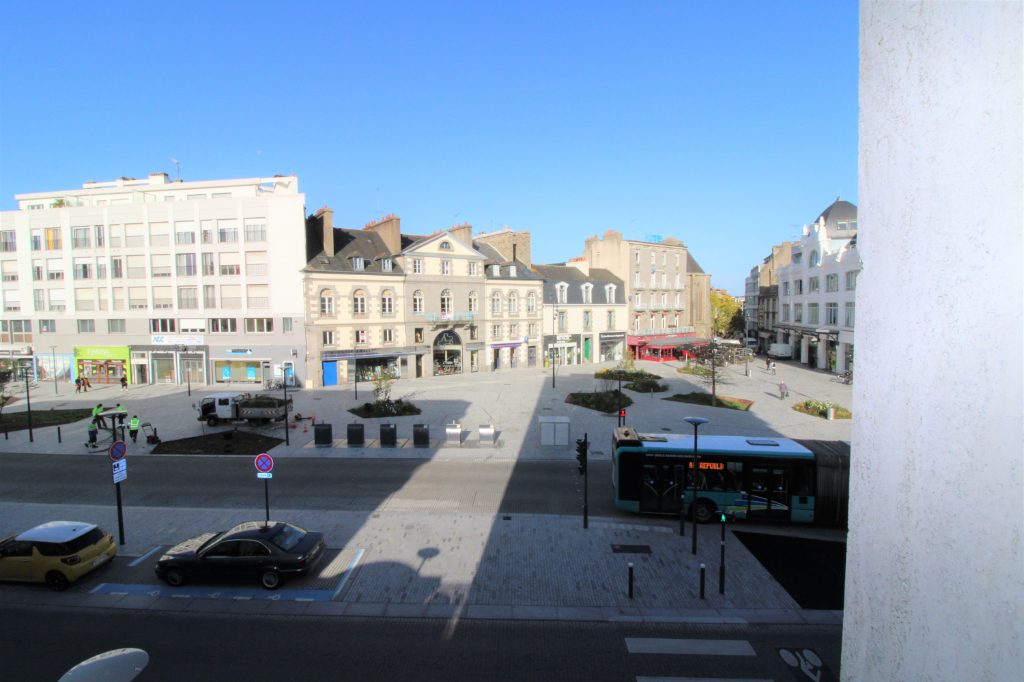 EXCLUSIVITE GOULARD IMMOBILIER, ST-BRIEUC PLEIN CENTRE, APPARTEMENT de type 2 BIS de 52 m² situé au 2ème étage avec ascenseur d’une résidence sécurisée avec vue sur la place Duguesclin, comprenant : entrée avec placard, cuisine aménagée (four, plaque de cuisson, hotte aspirante, lave-vaisselle, meubles de rangement), séjour, une chambre ,(…)