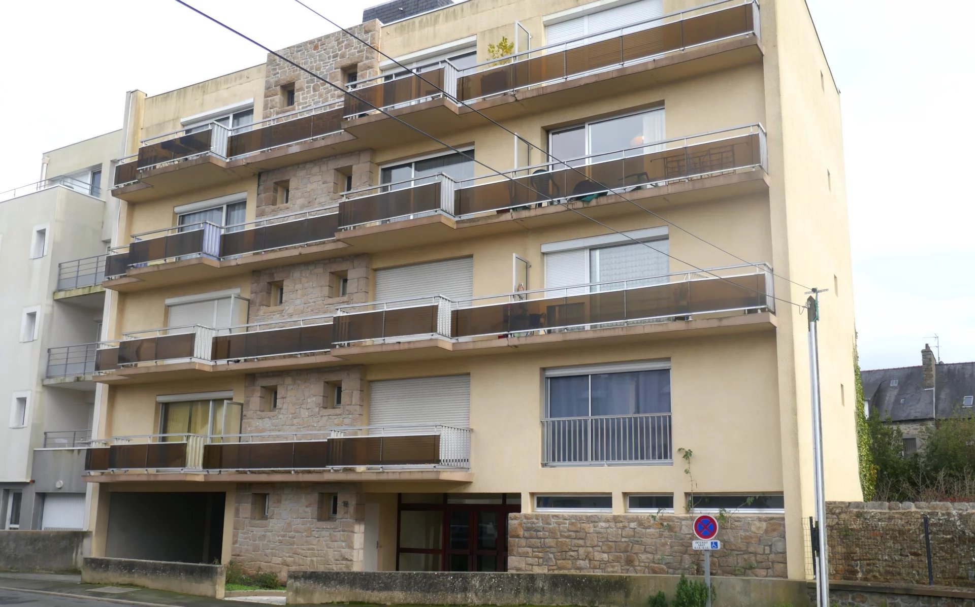 SAINT BRIEUC, St Michel, 2 mns rue piétonnes et centre ville, dans résidence sécurisée avec ascenseur, bel appartement 2 P. comprenant : entrée avec placard, séjour, cuisine équipée, 1 chambre, salle d’eau, WC. – cave