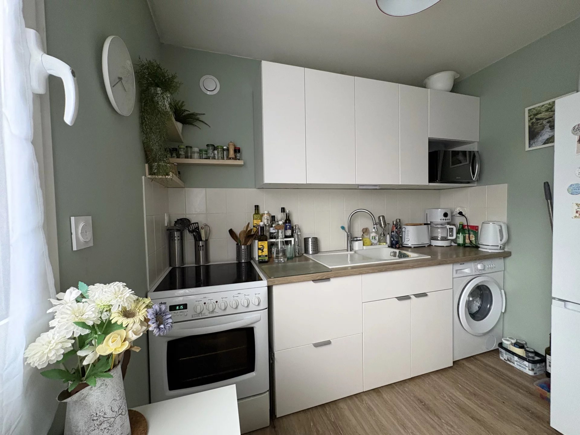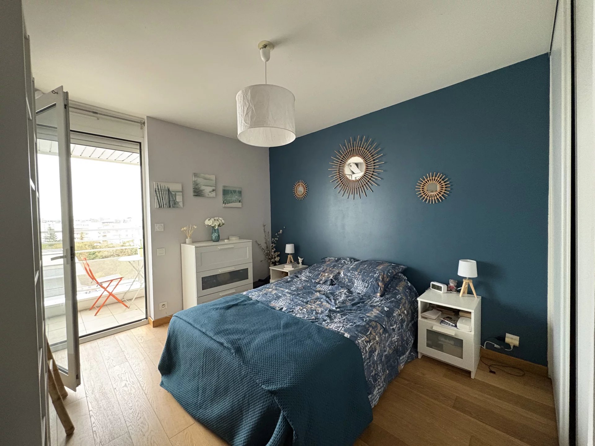 ST BRIEUC, entre la gare SNCF et le centre commercial « Les Champs », dans résidence de standing de 1996 avec ascenseur, bel appartement 3 P. en bon état comprenant : entrée, séjour ouvrant sur balcon parfaitement exposé – coin cuisine équipée et aménagée, 2 chambres avec placard et dont une ouvrant sur balcon, salle d’eau, W.C. – cave et garage