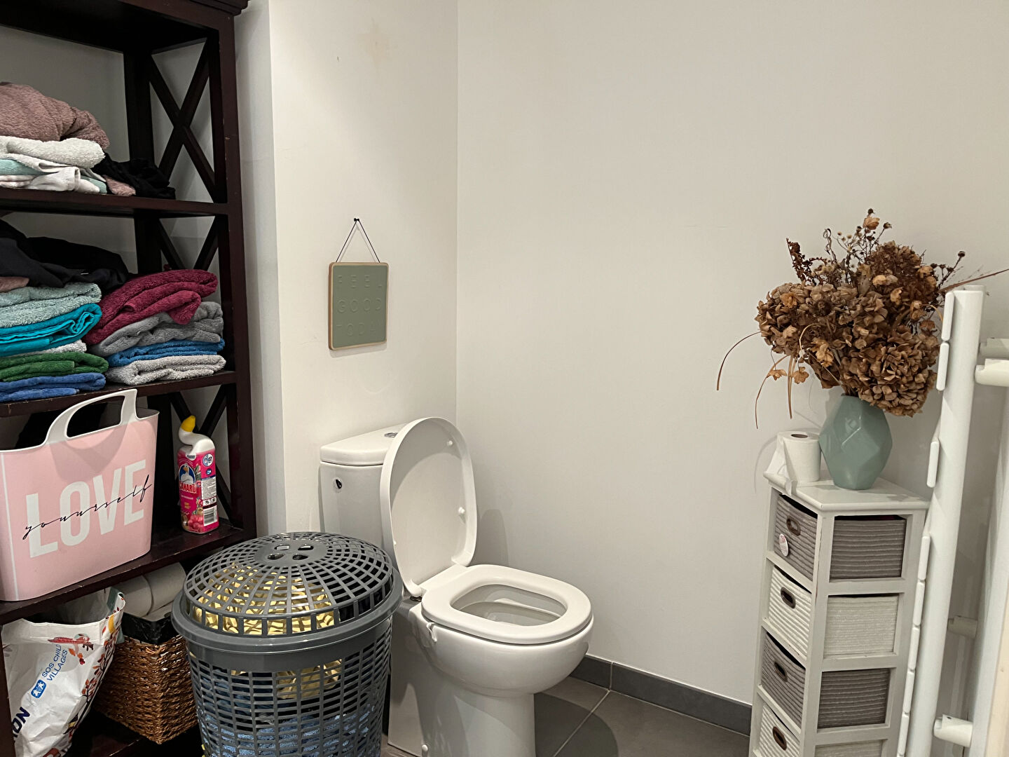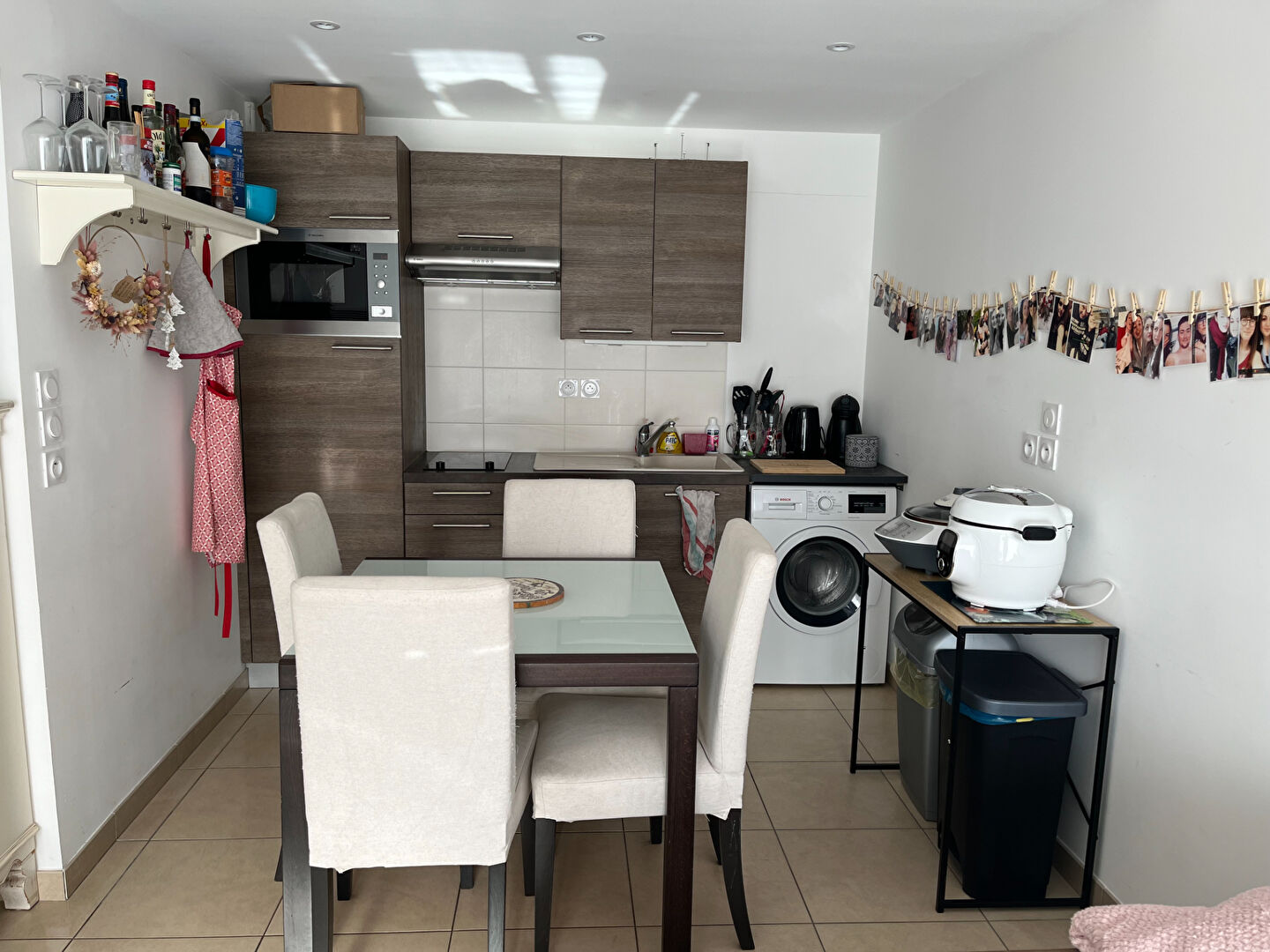 Dans une résidence récente parfaitement entretenue, un appartement de type T2 comprenant une entrée avec placard, une pièce de vis avec cuisine aménagée et équipée, une chambre, une salle d’eau avec WC, une terrasse et un jardin.