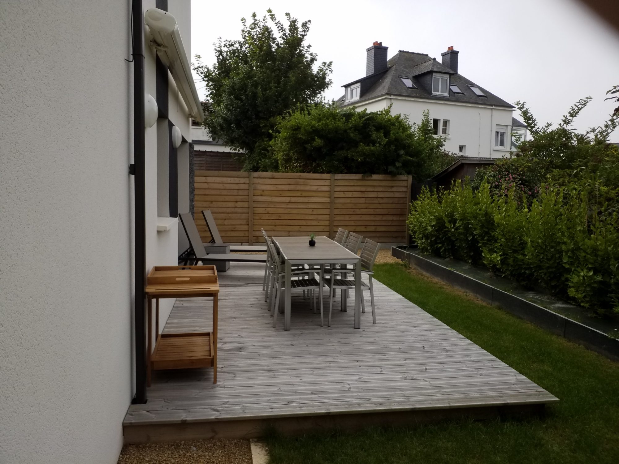 ? Charmante Maison en Location Meublée à l’Année à Trébeurden ? Vous recherchez un chez-vous chaleureux et confortable avec une vue sur la mer ? Ne cherchez plus ! Cette magnifique maison située à Trébeurden est disponible dès maintenant et attend ses nouveaux locataires. Caractéristiques principales : Emplacement : Trébeurden, Bretagne, France Disponibilité : Immédiate Chambres : 3 chambres au rez-de-chaussée Pièce à Vivre : Spacieuse pièce à vivre à l’étage Terrasse : Terrasse ensoleillée à l’étage avec vue panoramique sur la mer Situation : Nichée dans une impasse tranquille, à proximité de l’Intermarché Parking : 1 place de parking disponible sur la propriété Espace Supplémentaire : Local dédié au rangement des vélos Confort Moderne : Équipée d’une pompe à chaleur pour un climat intérieur optimal Loyer : 1200 par mois Charges : 50 par mois (inclut l’entretien du jardin) Dépôt de Garantie : 1200 (équivalent à un mois de loyer) Proposée par : Agence Les Maestros Immo Cette maison élégante offre un agencement pratique. Située dans une impasse calme, vous apprécierez le calme et la sérénité de cet emplacement tout en restant à proximité des commodités telles que l’Intermarché. De plus, avec une place de parking dédiée sur la propriété, vous n’aurez jamais à vous soucier de trouver un espace de stationnement. Les amateurs de cyclisme seront ravis de trouver un local dédié pour ranger leurs vélos en toute sécurité. Pour votre confort tout au long de l’année, la maison est équipée d’une pompe à chaleur qui vous offrira une température intérieure agréable, quelle que soit la saison. De plus, l’entretien du jardin est compris dans le loyer, ce qui vous permettra de profiter pleinement de l’espace extérieur sans soucis. N’attendez pas pour saisir cette opportunité offerte par l’agence Les Maestros Immo. Contactez-nous dès aujourd’hui pour organiser une visite et découvrir par vous-même tout ce que cette maison a à offrir. Honoraires locataire : 494,58 dont 228,27 pour l’état des lieux et 266,31 pour les visites et le bail.