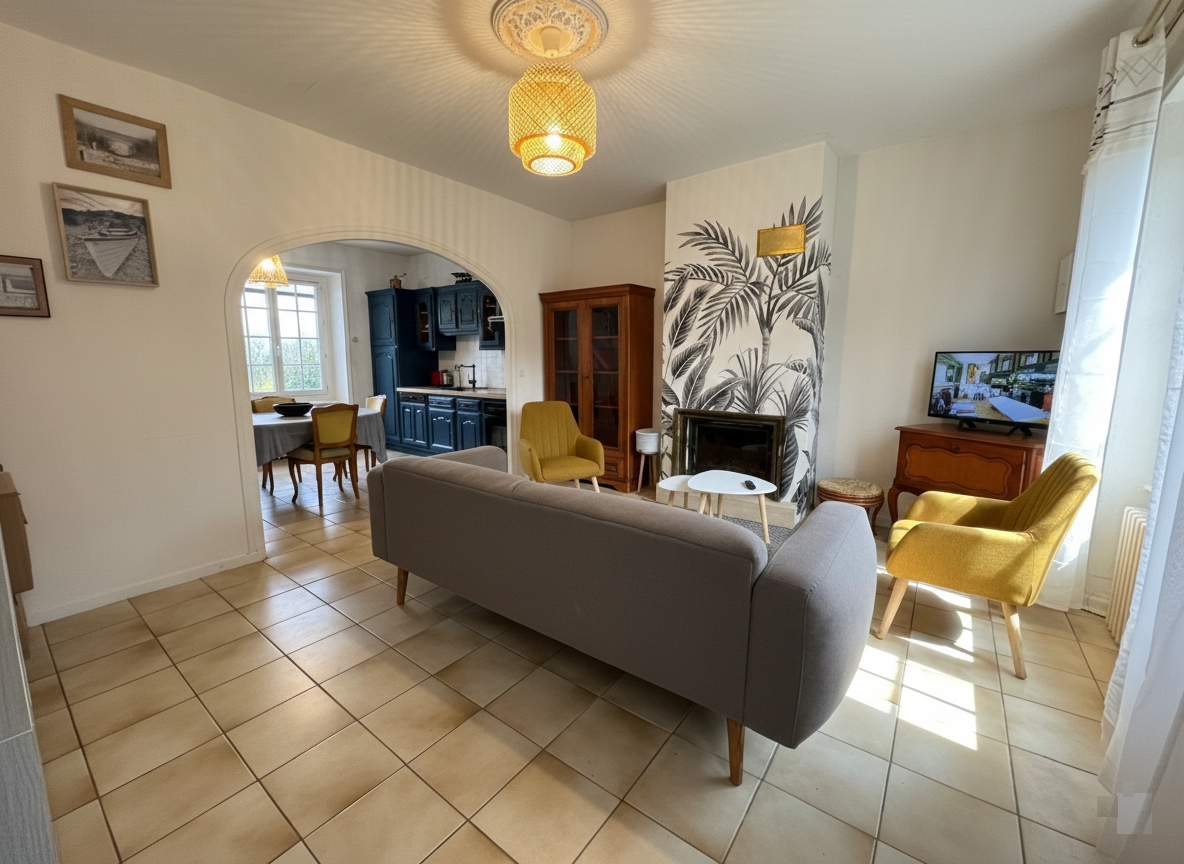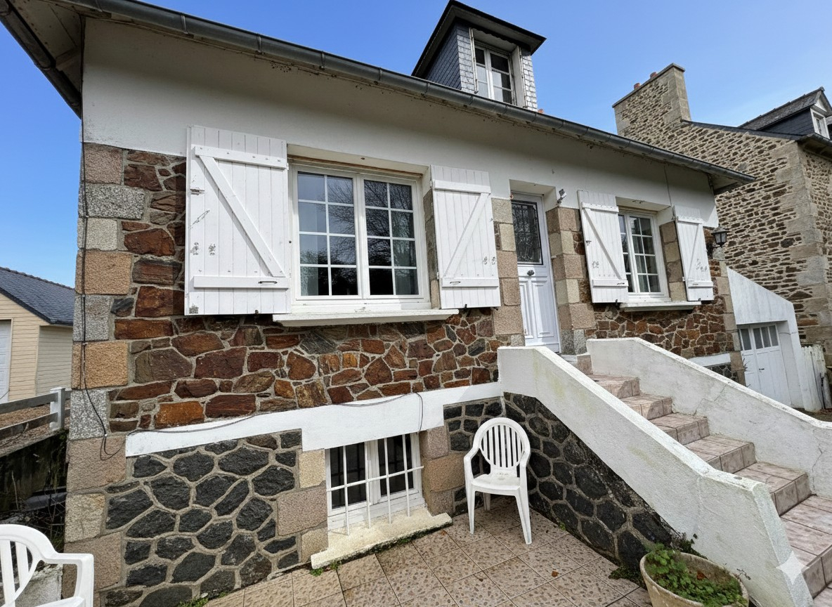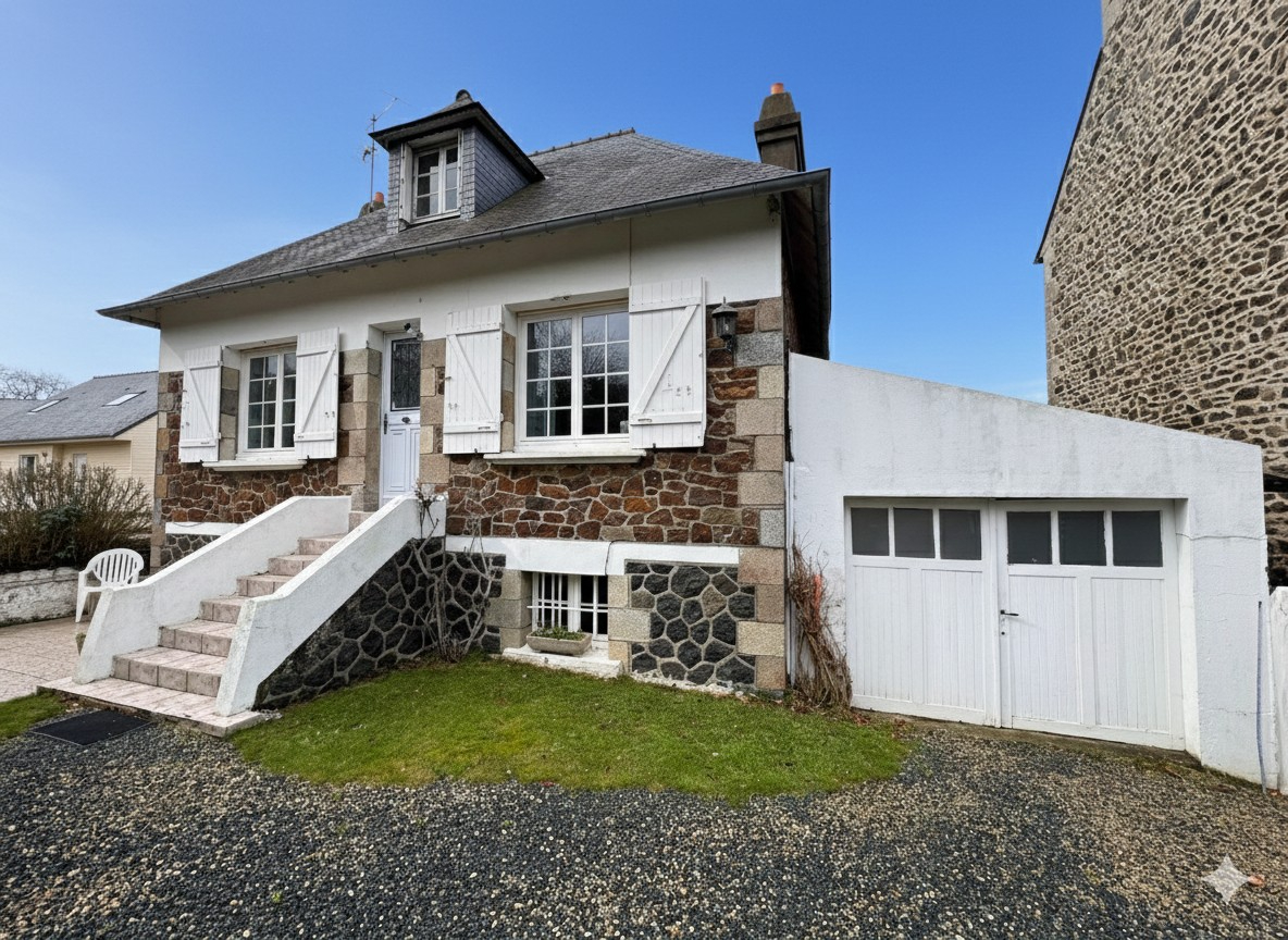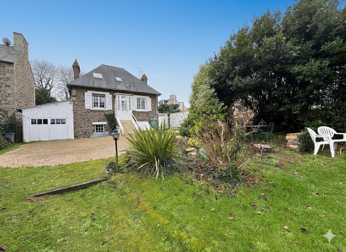 A 500 m du bourg et 1 km des plages à pied, cette maison de caractère en pierres se compose en rez de chaussée une pièce de vie avec cheminée, traversante offrant une vue sur le parc et un joli coup d’oeil sur la mer, un dégagement dessert chambre, salle d’eau récente et WC indépendant; à l’étage, 2 chambres, cabinet de toilettes avec wc, débarras. Un garage traversant de 25 m² donne accès à la cour arrière pour du stationnement supplémentaire et pour permettre une évacuation aisée pour l’entretien du jardin. Un sous sol avec une belle hauteur sous plafond et de la tommette au sol se divise en chaufferie, chambre d’été ou salle de jeux, une grande cave sur sol gravillonné complète ce bien. Un parc de 1580 m² sur l’arrière en grande partie, vous permettra de profiter du verger, des espaces terrasse et barbecue, de la pelouse pour les jeux des enfants. Ideal pour une résidence principale de caractère ou une maison de vacances.