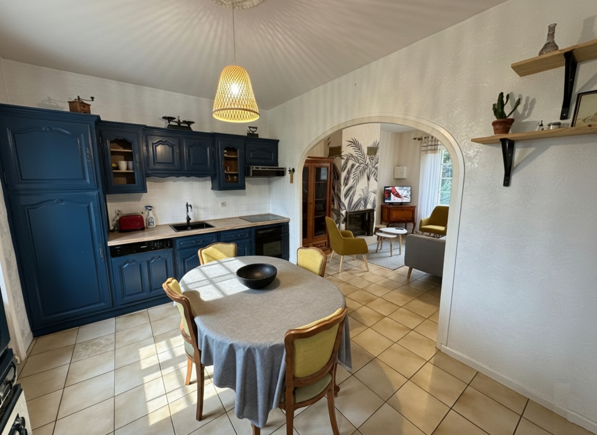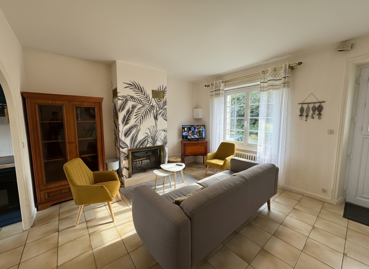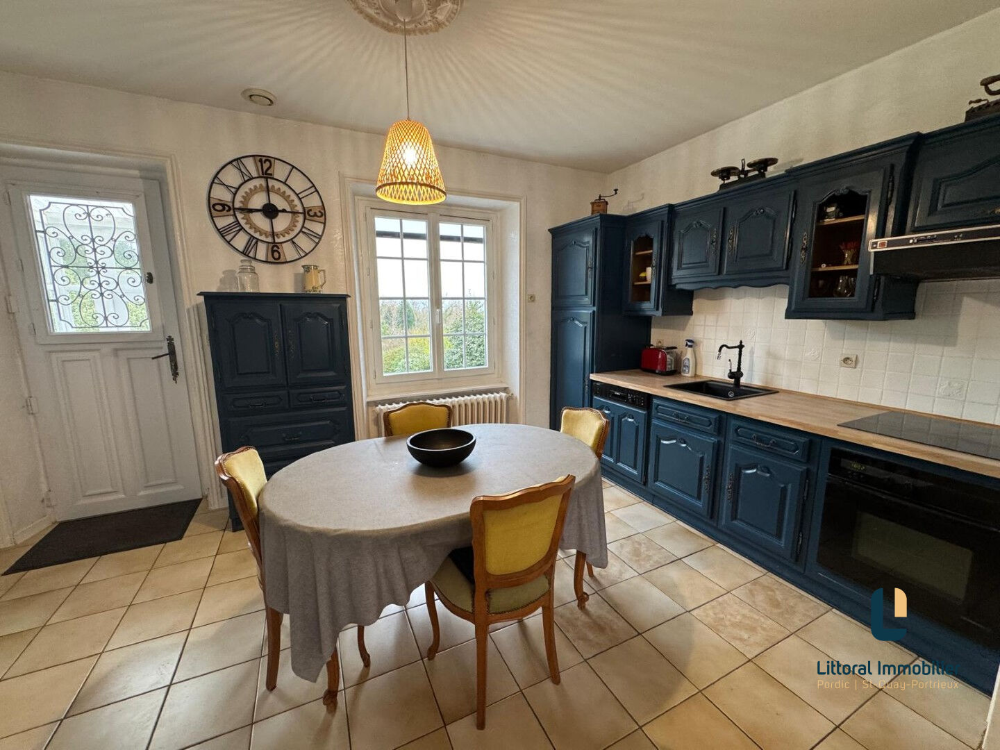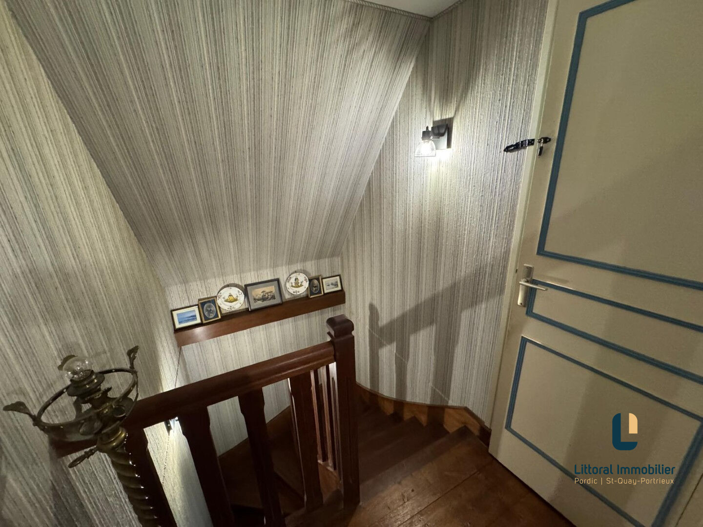 A 500 m du bourg et 1 km des plages à pied, cette maison de caractère en pierres se compose en rez de chaussée une pièce de vie avec cheminée, traversante offrant une vue sur le parc et un joli coup d’oeil sur la mer, un dégagement dessert chambre, salle d’eau récente et WC indépendant; à l’étage, 2 chambres, cabinet de toilettes avec wc, débarras. Un garage traversant de 25 m² donne accès à la cour arrière pour du stationnement supplémentaire et pour permettre une évacuation aisée pour l’entretien du jardin. Un sous sol avec une belle hauteur sous plafond et de la tommette au sol se divise en chaufferie, chambre d’été ou salle de jeux, une grande cave sur sol gravillonné complète ce bien. Un parc de 1580 m² sur l’arrière en grande partie, vous permettra de profiter du verger, des espaces terrasse et barbecue, de la pelouse pour les jeux des enfants. Ideal pour une résidence principale de caractère ou une maison de vacances.
